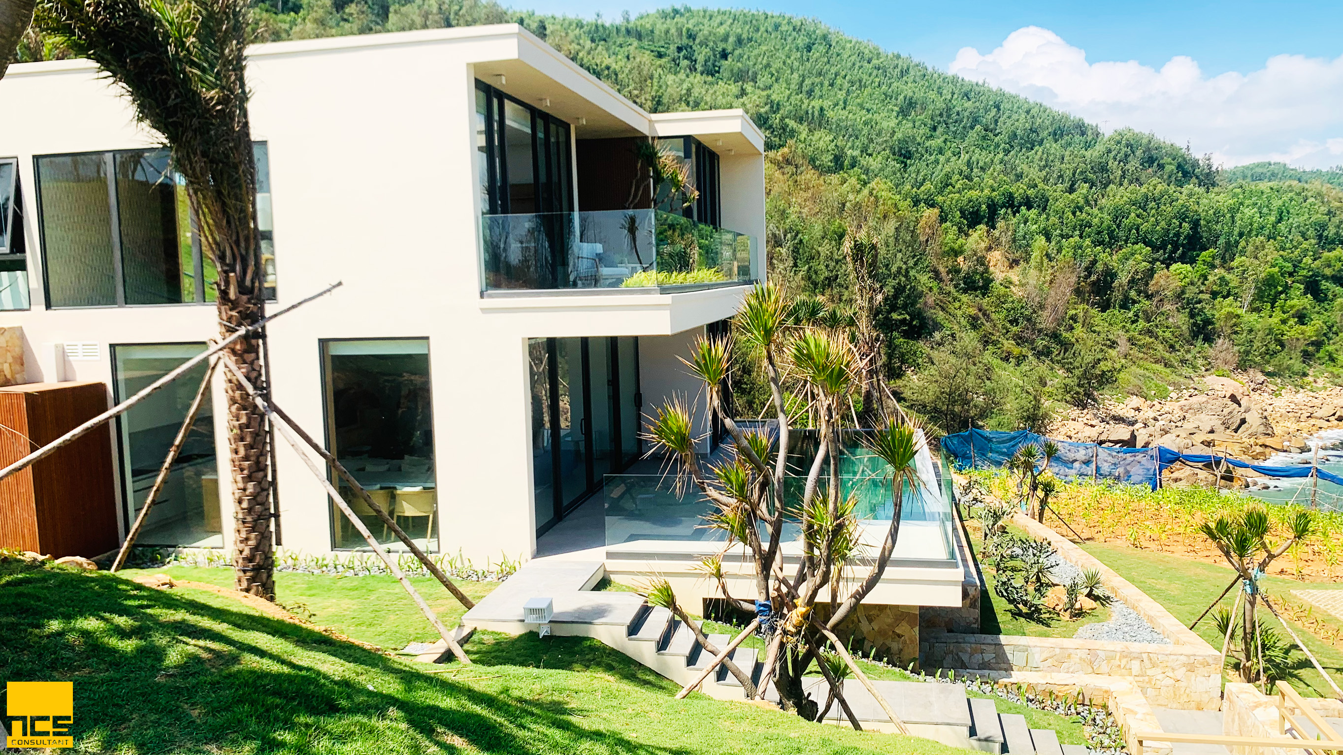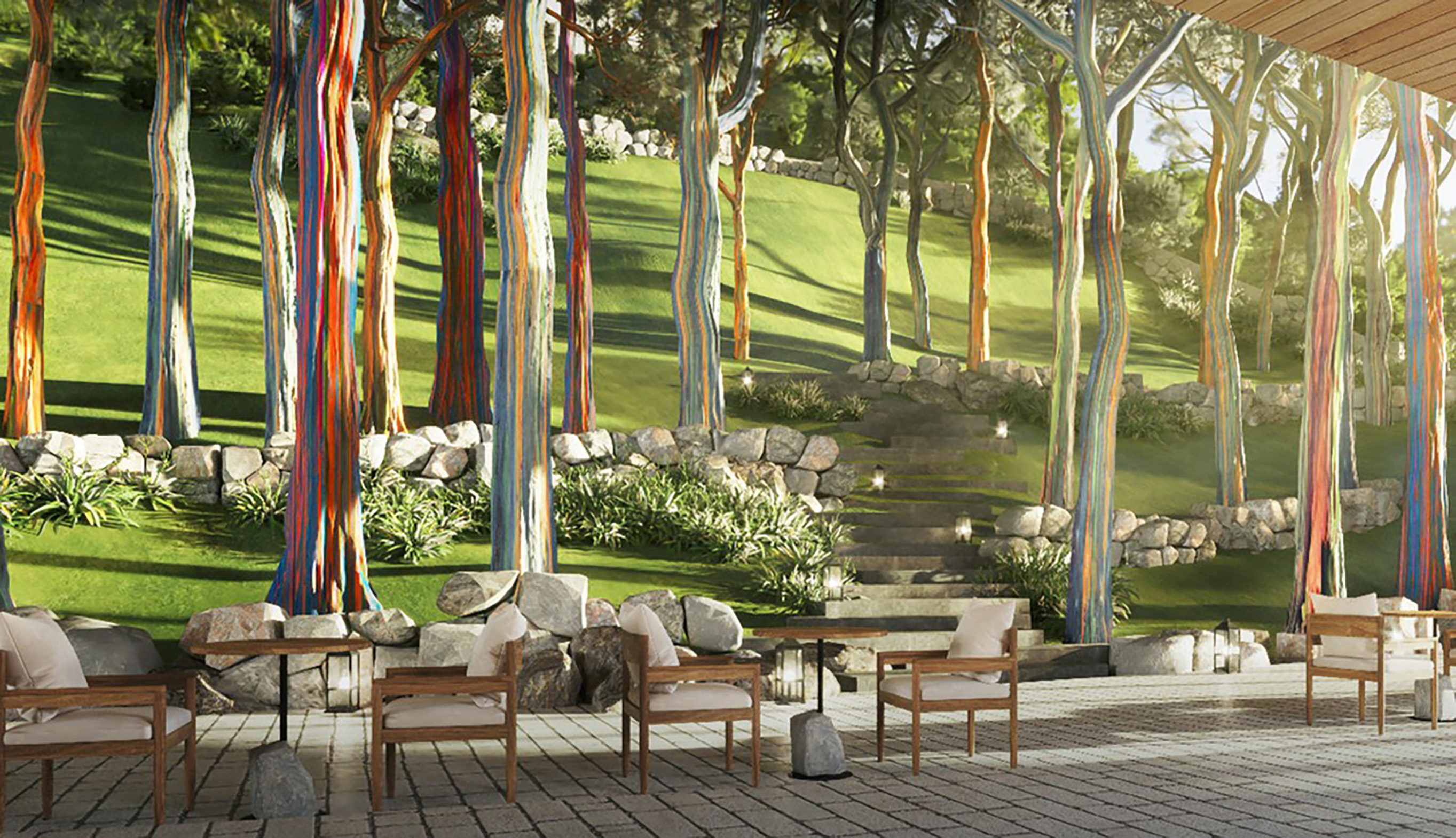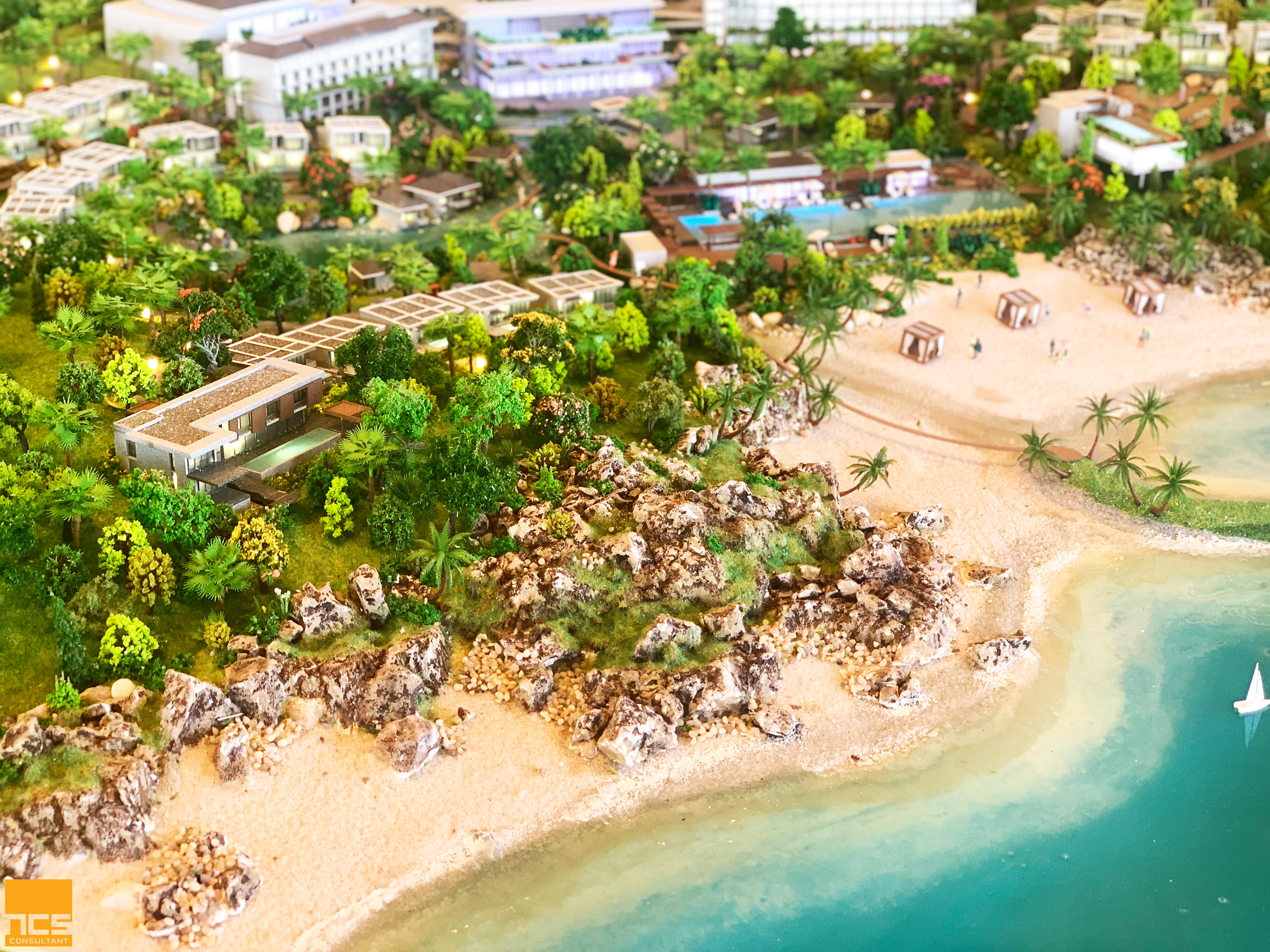 Điểm đặc trưng nổi bật của dự án nằm ở cấu trúc cảnh quan đa dạng, được tổ chức thành các vùng trải nghiệm mang tính đặc trưng cao, bao gồm rock-scape, forest-scape, lake-scape và beach-scape. Mỗi vùng không gian mang một cá tính riêng, từ sự mạnh mẽ, thô ráp của ghềnh đá, sự nguyên sơ, tĩnh lặng của rừng nhiệt đới, đến sự yên bình của mặt hồ và sự rộng mở, năng động của biển. Sự chuyển đổi giữa các không gian này không diễn ra đột ngột mà được dẫn dắt thông qua hệ thống đường dạo và các lớp cảnh quan trung gian, tạo nên một hành trình liên tục, nơi mỗi bước đi là một trải nghiệm mới mẻ nhưng vẫn giữ được tính liên kết tổng thể.